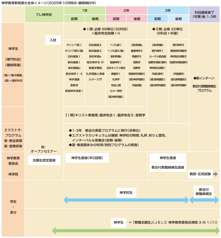 そもそも神学教育は、教会の行う業であり、教会は神学校にその働きの特に座学の部分を委託してきたわけですから、今回の改革はいわば、本来の形を整えるという意味もあることをご理解いただけると幸いです。牧師を生み出すのは教会の役割であり、その学生を育てる責任も教会にあるということです。