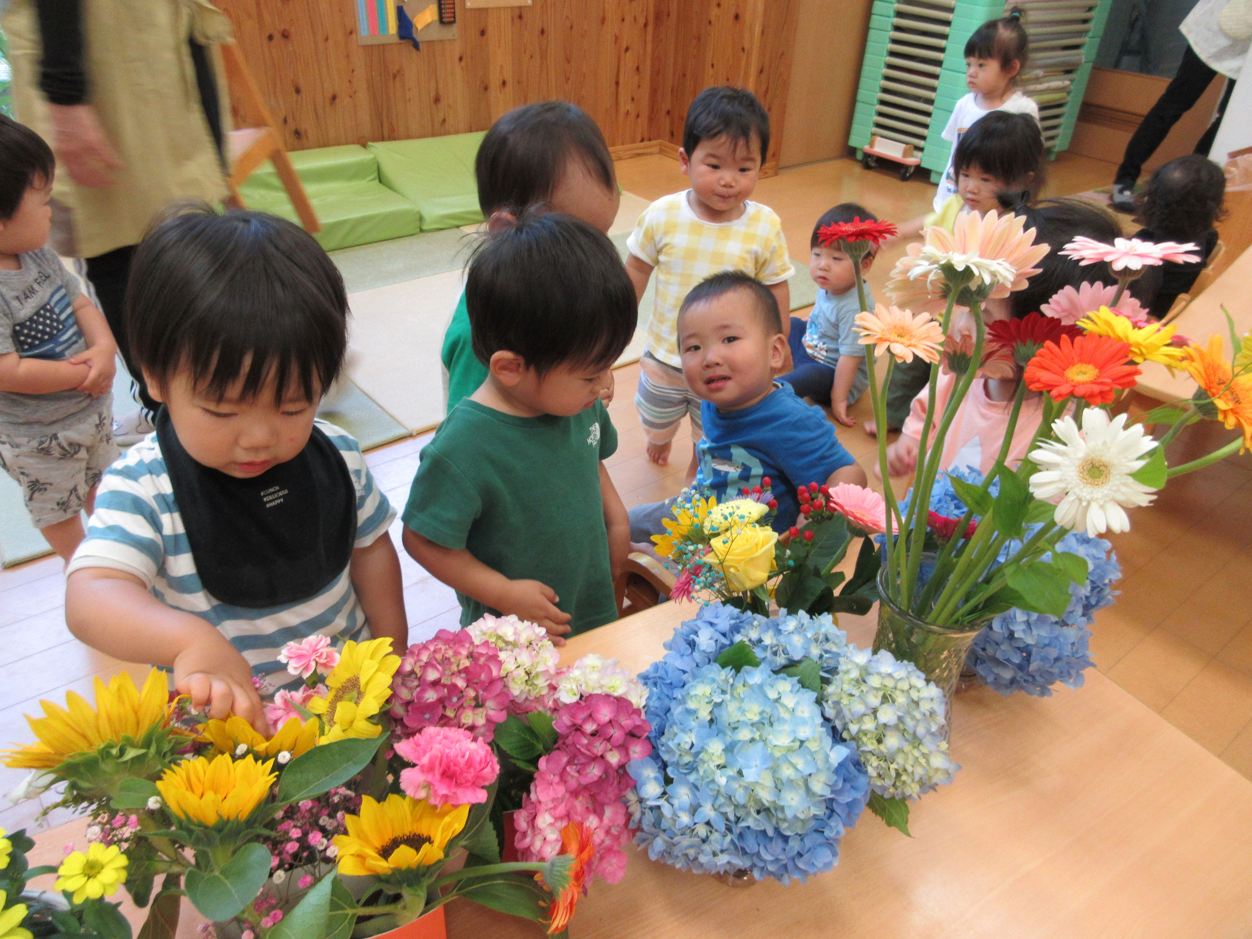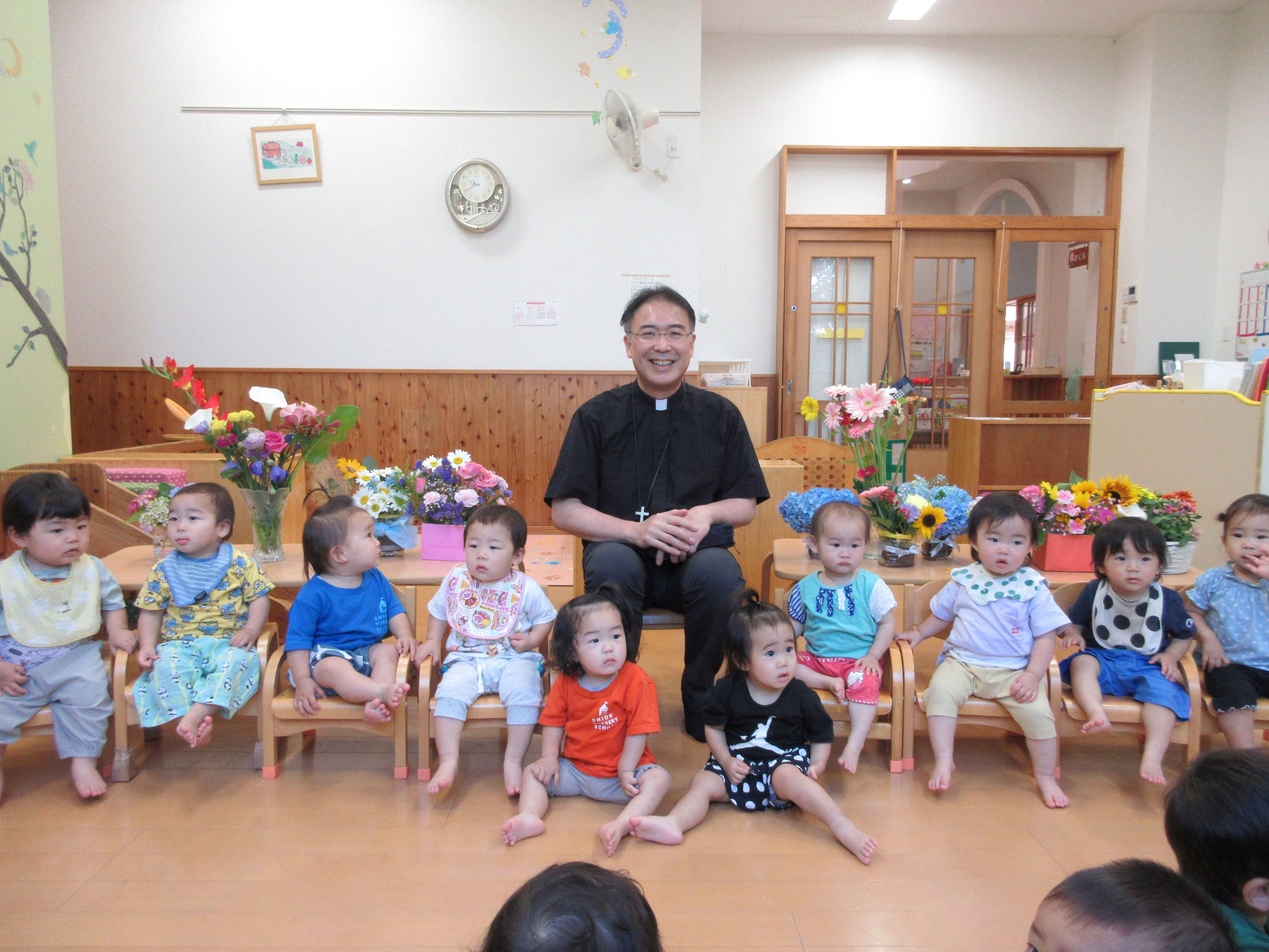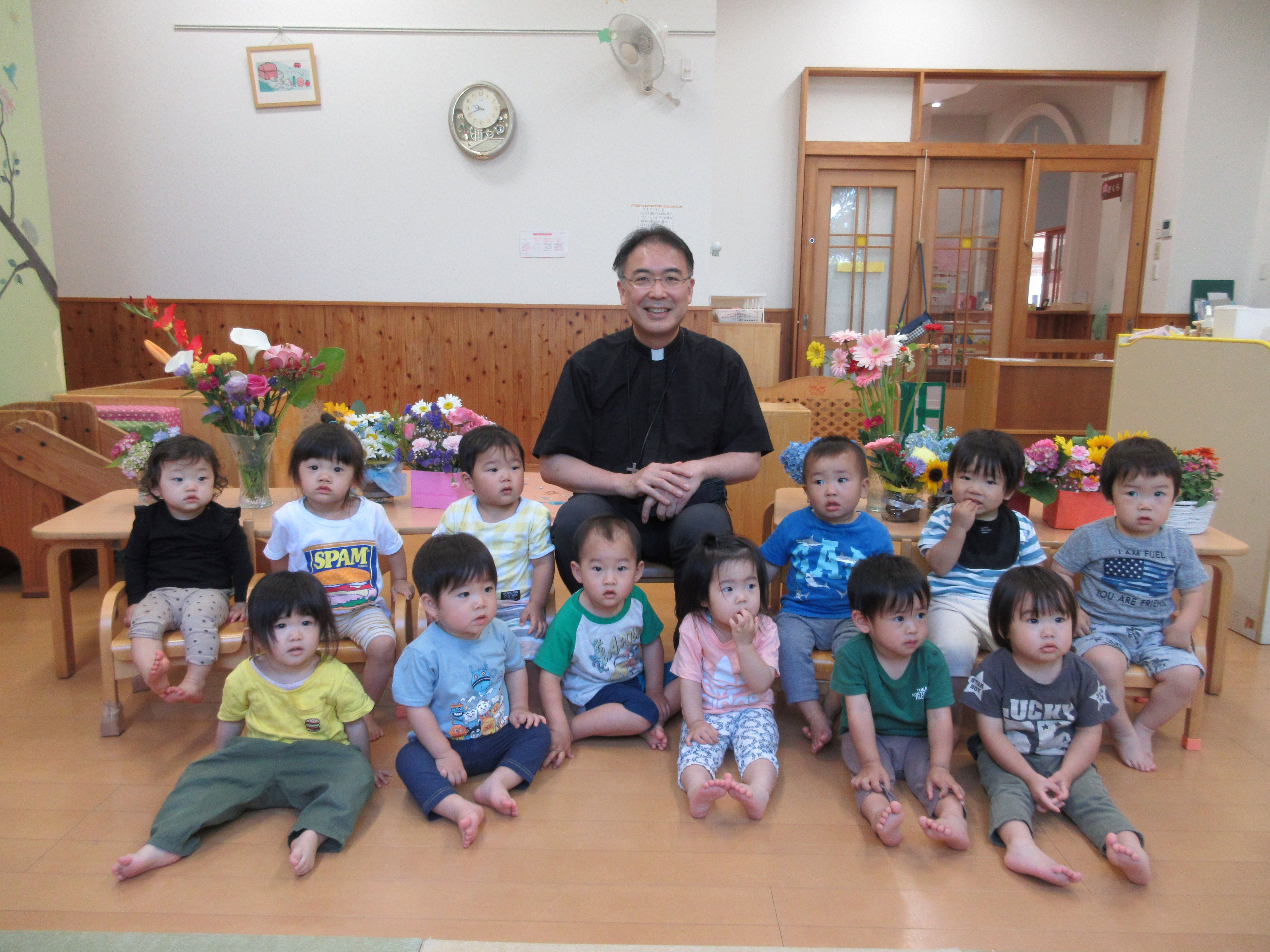 牧師先生から「お花のように美しくてきれいな心で育ってくださいね」と祝福していただきました![]()