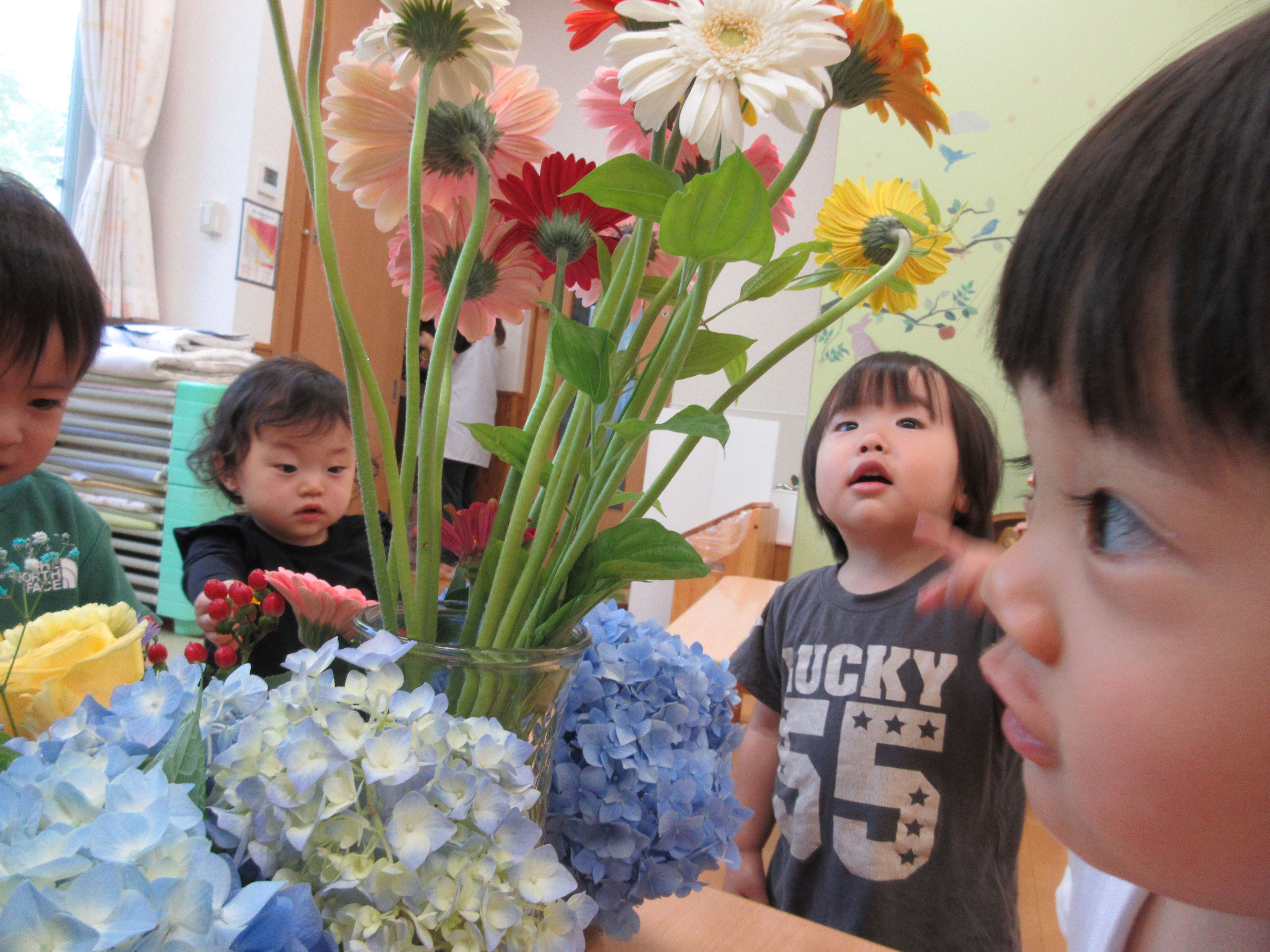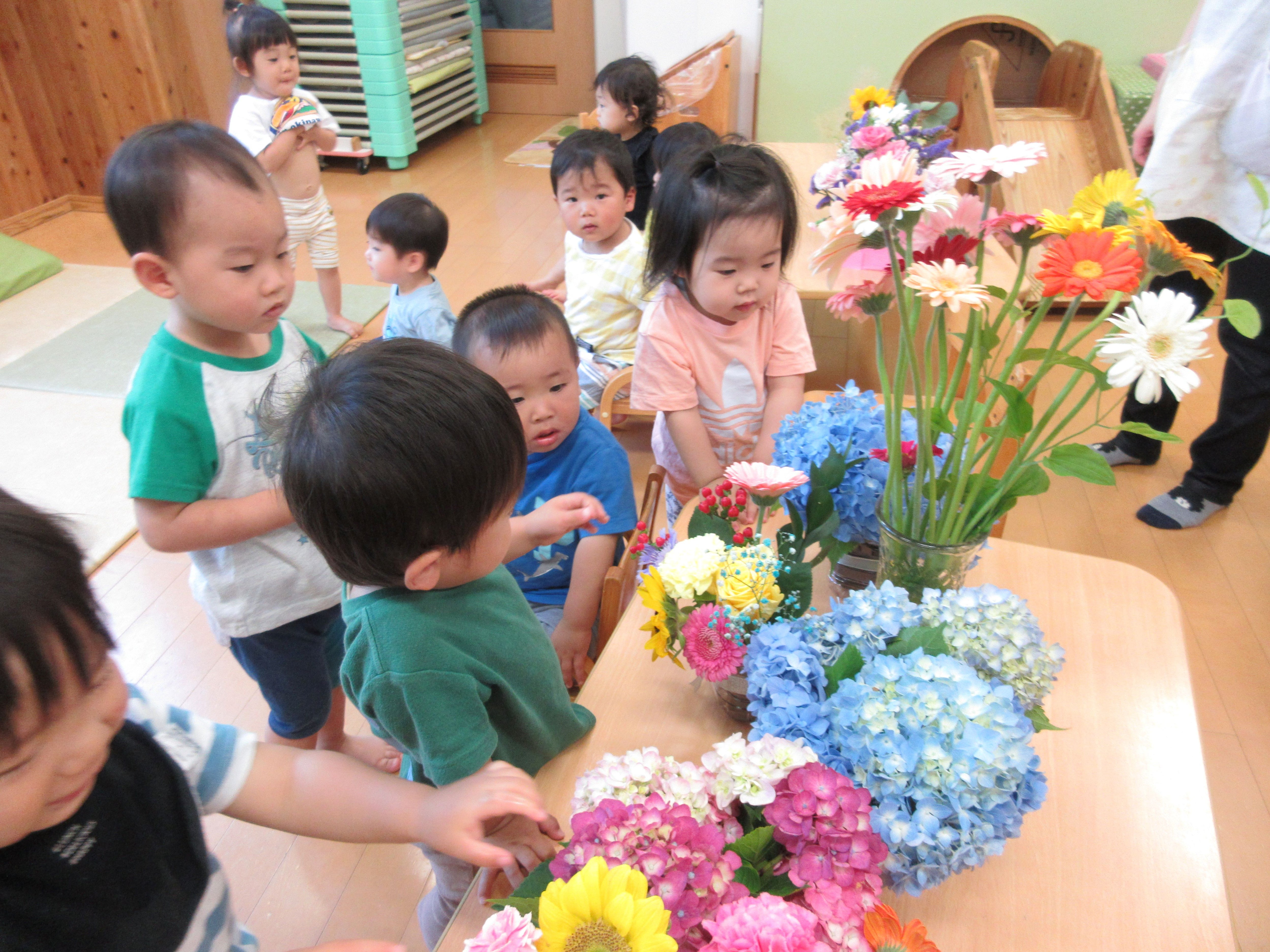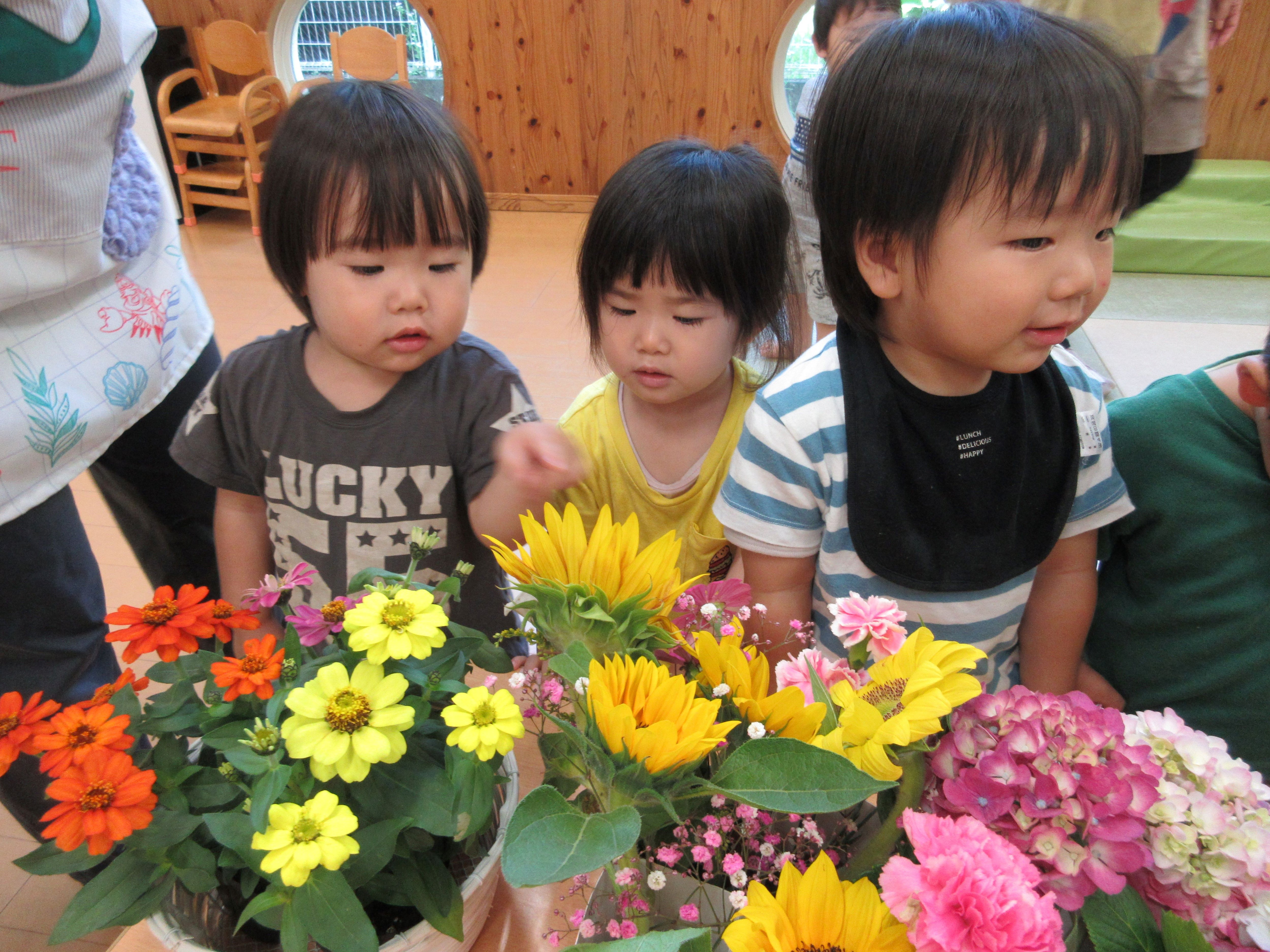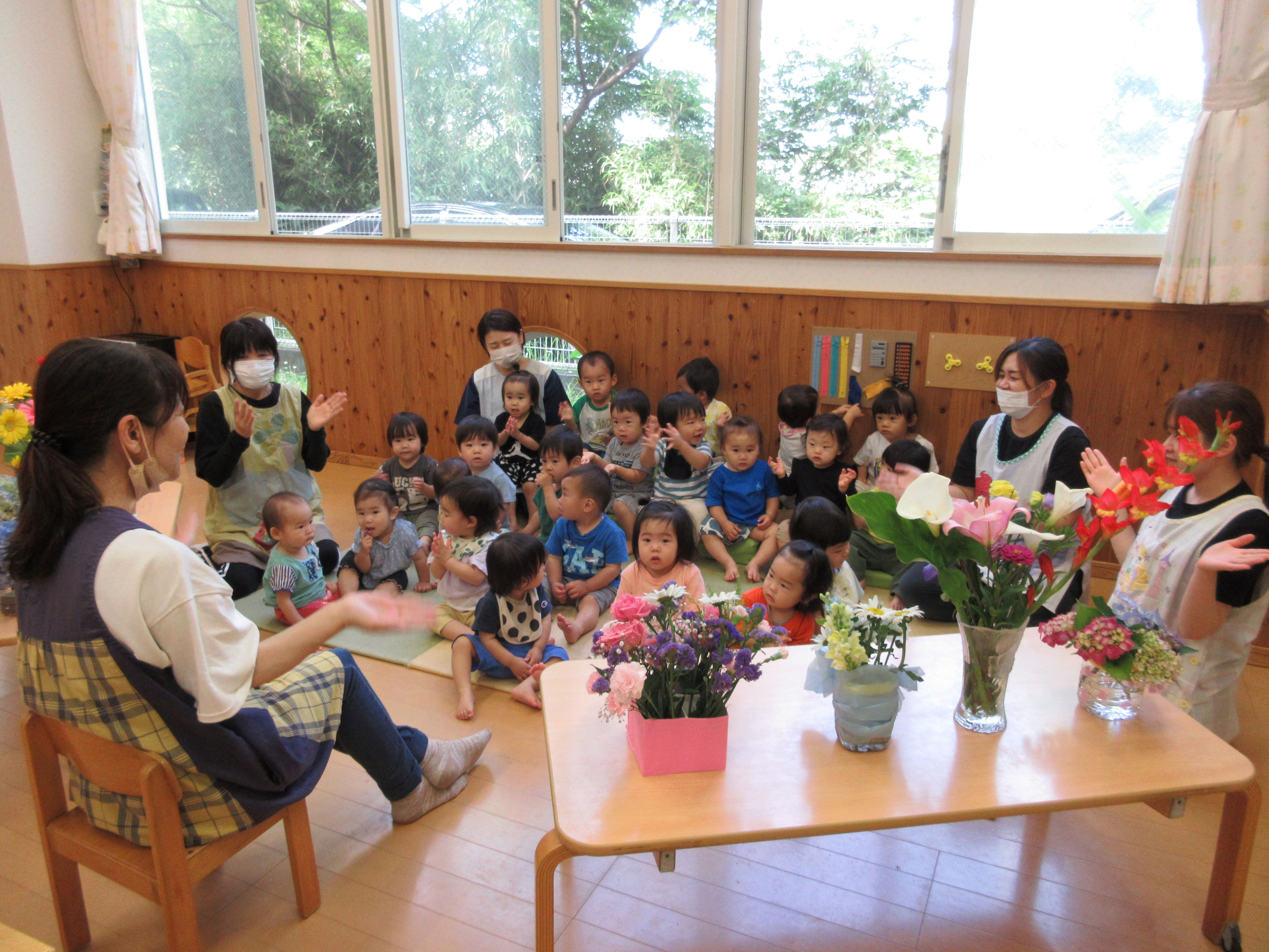 牧師先生から「お花のように美しくてきれいな心で育ってくださいね」と祝福していただきました![]()