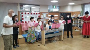 最後はピアノ生演奏に合わせて職員が歌い