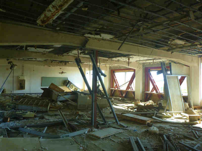 写真の一番奥が、復旧・復興時にお風呂(天然温泉)の拠点となった道の駅「上品の郷」です。現在、復興公営団地が立っている地域は、以前は荒れ地になっていました。