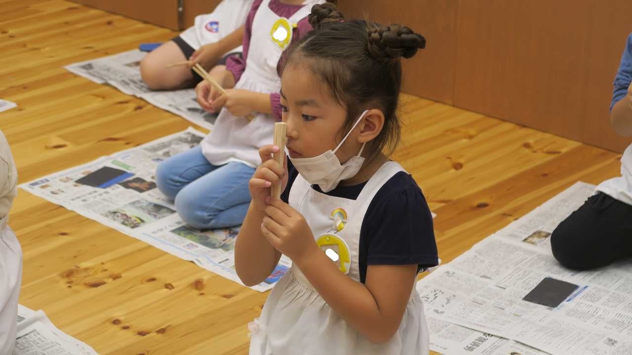 月組さんはお家に持ち帰りましたので、箸を作った過程等を子どもたちが話してくれると