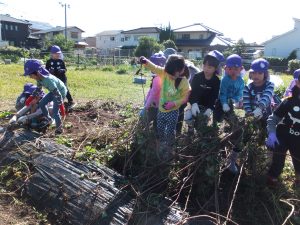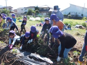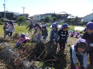 まずはお芋のつるをみんなで引っ張りました。