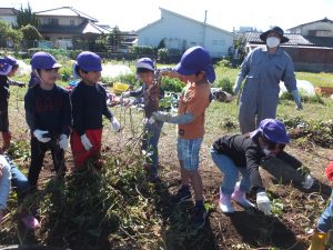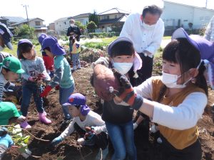 どんどん掘り進めて、たくさんのおいもを掘り出すみんなです。さすがみどりぐみさん!