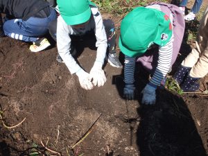 緑組のみんなもバスに乗って、熊本市ふれあい農園(御幸笛田)の畑にお芋ほりに行きました。