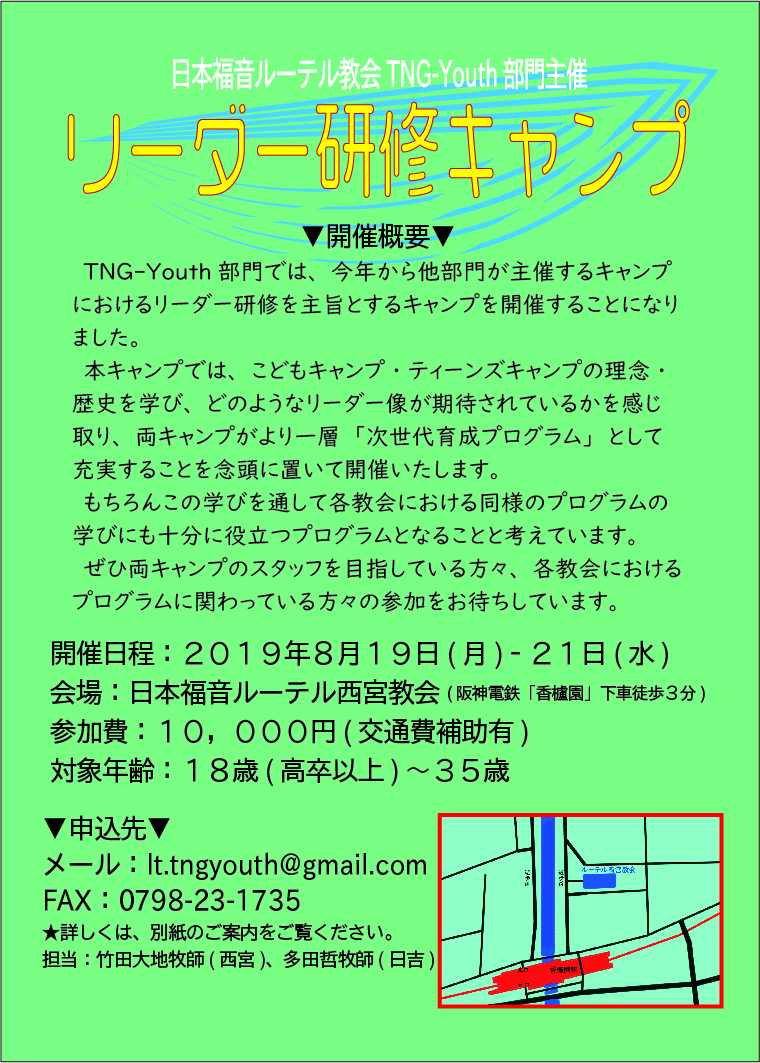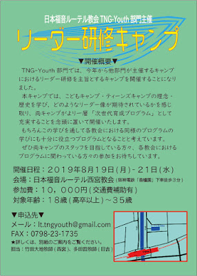 TNG-YOUTH 第1回リーダー研修キャンプ(2019/8/19−21)開催のご案内